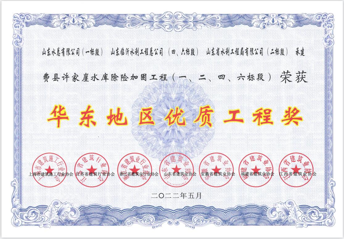 近日,开云(中国)Kaiyun·官方网站承建的费县许家崖水库除险加固工程荣获2021年度“华东地区优质工程奖”;泗水县泗河黄阴集大闸除险加固工程荣获2020-2021年度“山东省优质结构工程奖”。荣获这两个奖项,是开云(中国)Kaiyun·官方网站在省级质量奖项方面的又一次突破。在工程创优上,开云(中国)Kaiyun·官方网站始终坚持以企业发展为核心,践行“干一个工程,树一块丰碑”的质量方针。