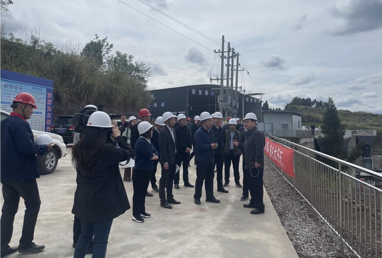 4月24日,四川省内江市市委副书记、市长李丹一行到第五分开云(中国)Kaiyun·官方网站承建的资中县两河口水库工程调研,内江市水利局党委书记、局长郭英,资中县委副书记、县长唐荣,副县长杨靖陪同调研。