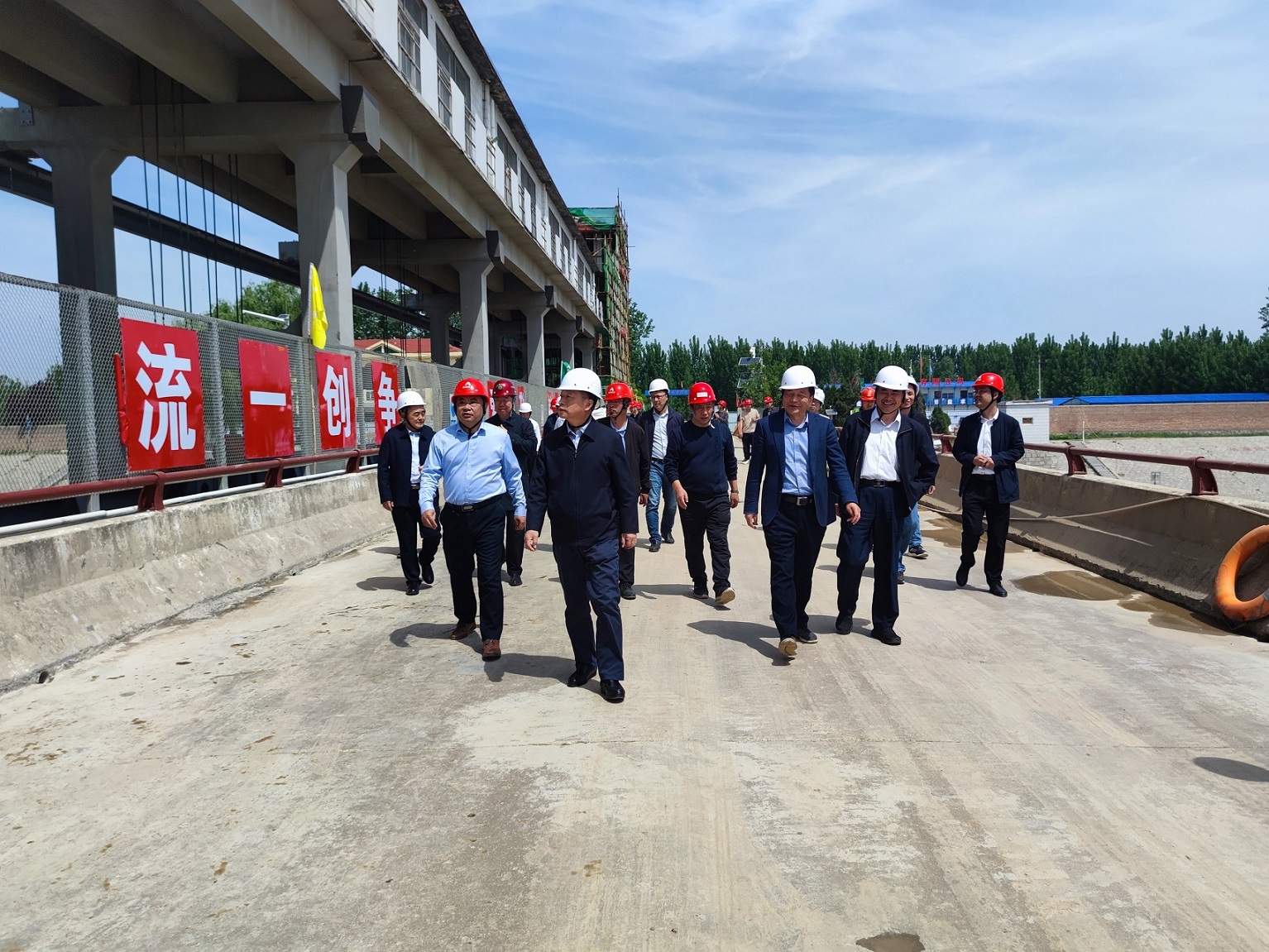 5月8日,山东省水利厅一级巡视员王祖利一行到小清河水牛韩节制闸除险加固工程进行调研督导,开云(中国)Kaiyun·官方网站党委书记、董事长刘深远陪同调研。第七分开云(中国)Kaiyun·官方网站总经理韩栋、副总经理李景波等参加调研。