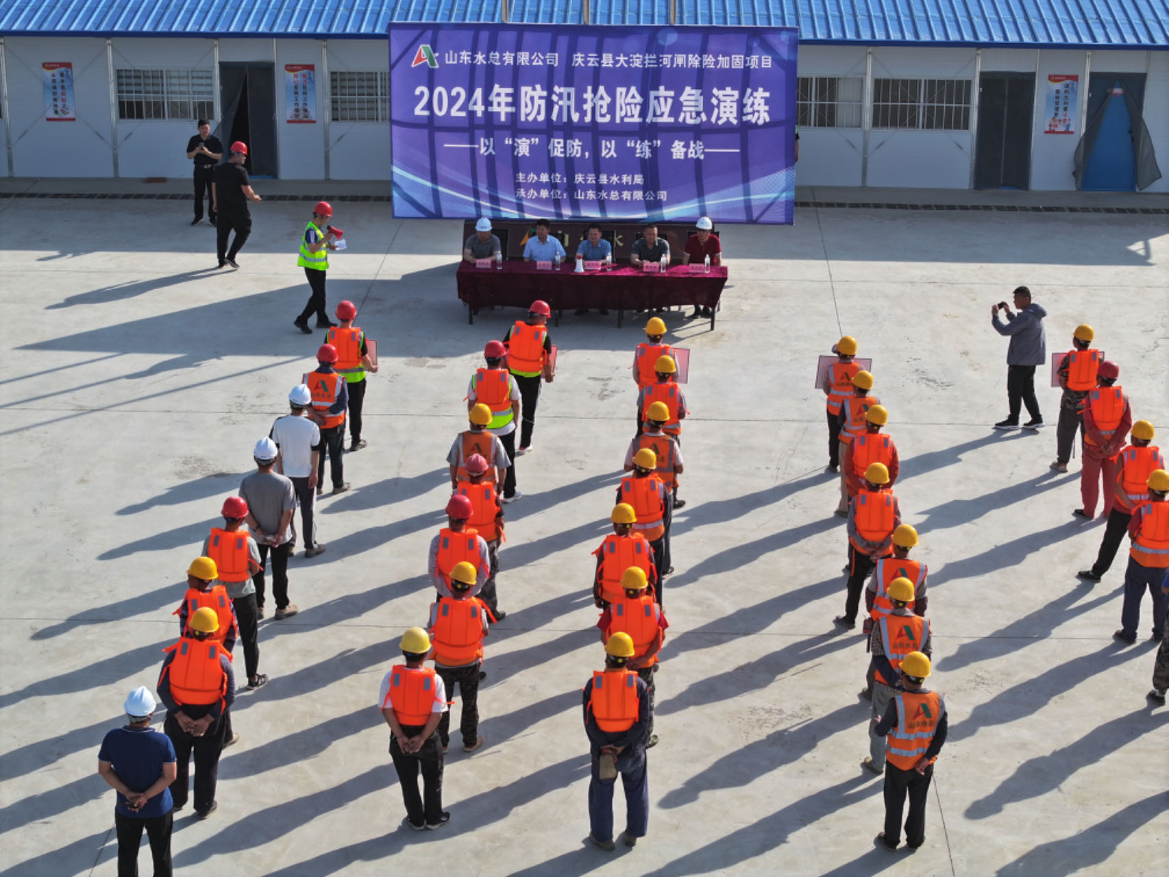 “以演促防,以练备战”—基础有限开云(中国)Kaiyun·官方网站庆云县大淀拦河闸项目开展2024年防汛抢险应急演练