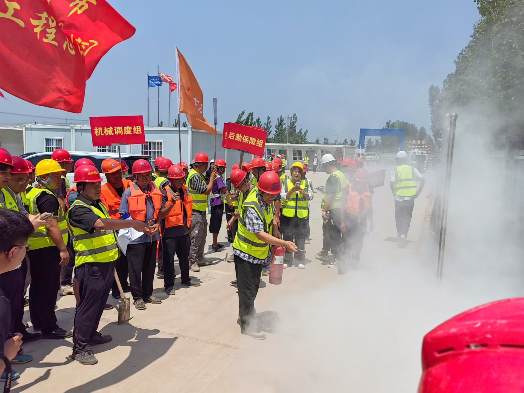 演练模拟区域性强降雨造成位山灌区三干渠水位持续上涨,堤防出现坍塌、决口等险情,项目部迅速启动应急预案,集结人员、器械、物资赶赴现场,按照分工,各司其职,展开抢险作业,有效控制了险情扩散;模拟了施工现场突发火情场景,抢险人员迅速利用灭火器等器材对火源进行扑救,及时进行人员疏散,有效控制了火势的蔓延和损害的进一步扩大。整个演练过程进展顺利,各小组配合默契、有条不紊,参与人员有序分工、通力合作,检验了应急预案和措施可行性,积累了实战经验,切实增强各参建单位应急避险意识,提高应急响应能力,达到预期效果。