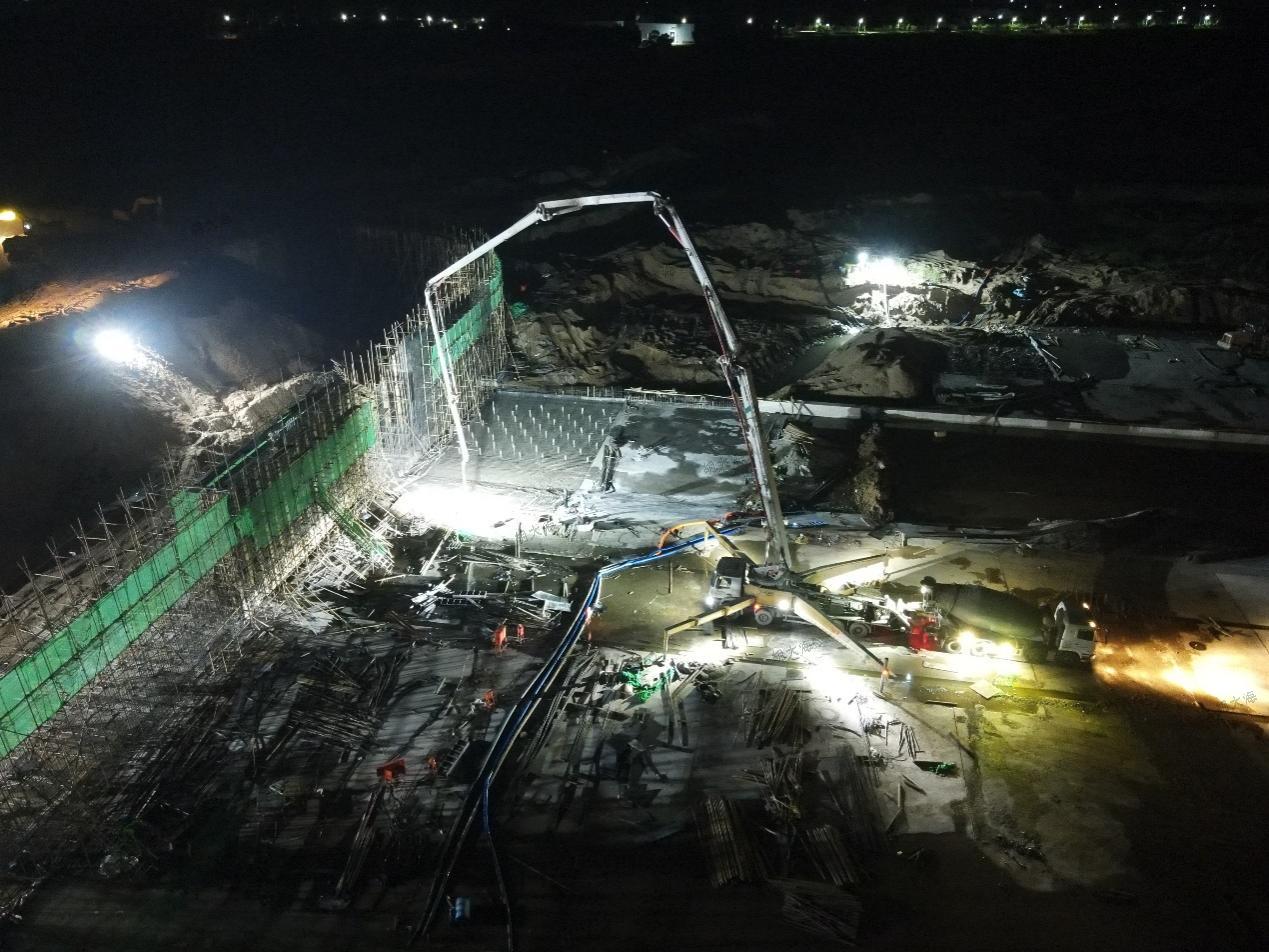 进入汛期以来,第三分开云(中国)Kaiyun·官方网站承建的沂南岸堤水源项目现场一片繁忙施工景象。白天抢抓晴好天气,全力推进工程建设进度;夜间灯火通明加强巡查,确保施工质量不受影响。目前,项目水下部位工程已全部完成,左岸消力池的浇筑也接近尾声。
