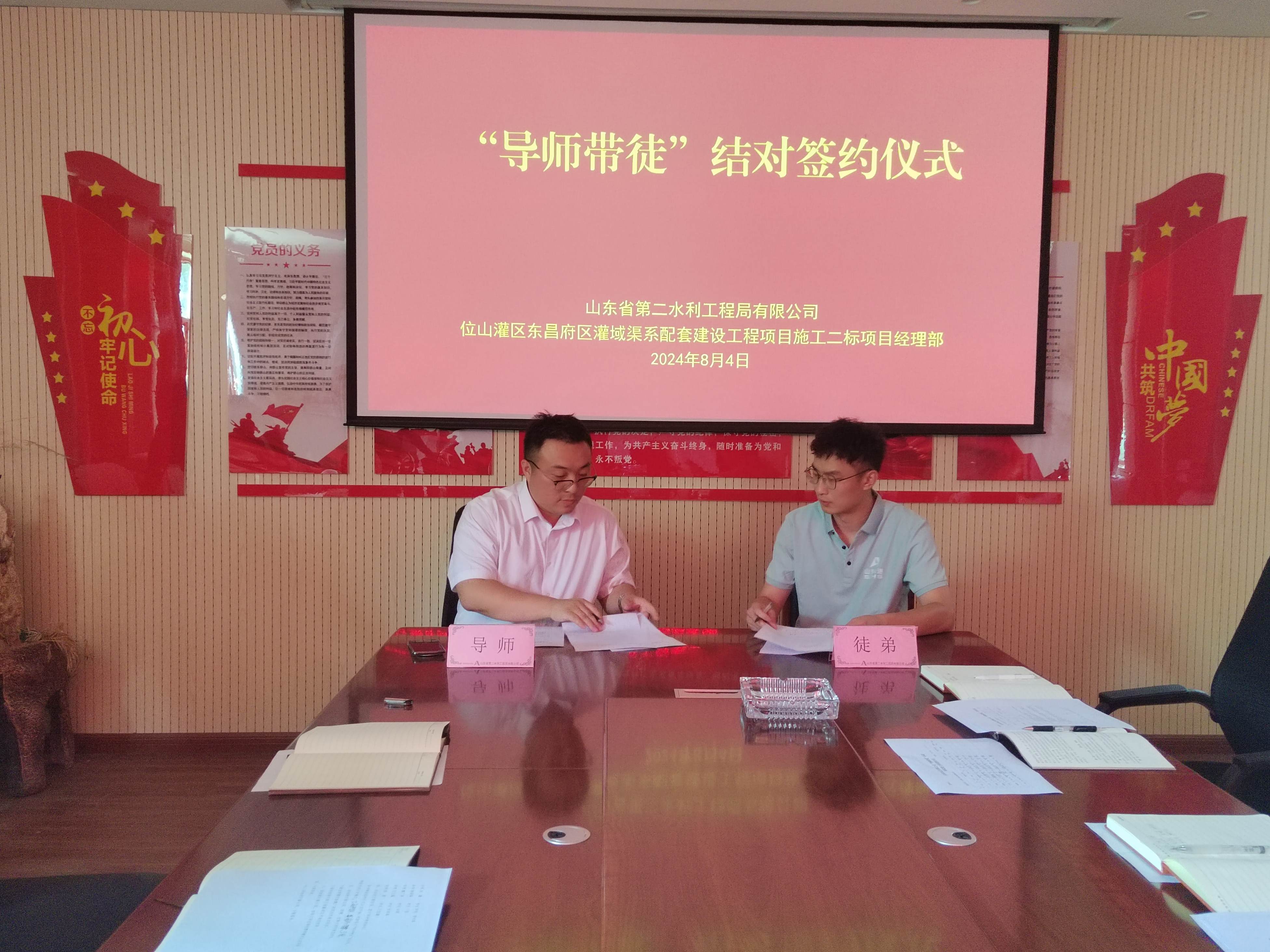 近日,二局有限开云(中国)Kaiyun·官方网站位山灌区东昌府区灌域渠系配套建设工程项目施工2标项目经理部举行了“导师带徒”结对签约仪式。