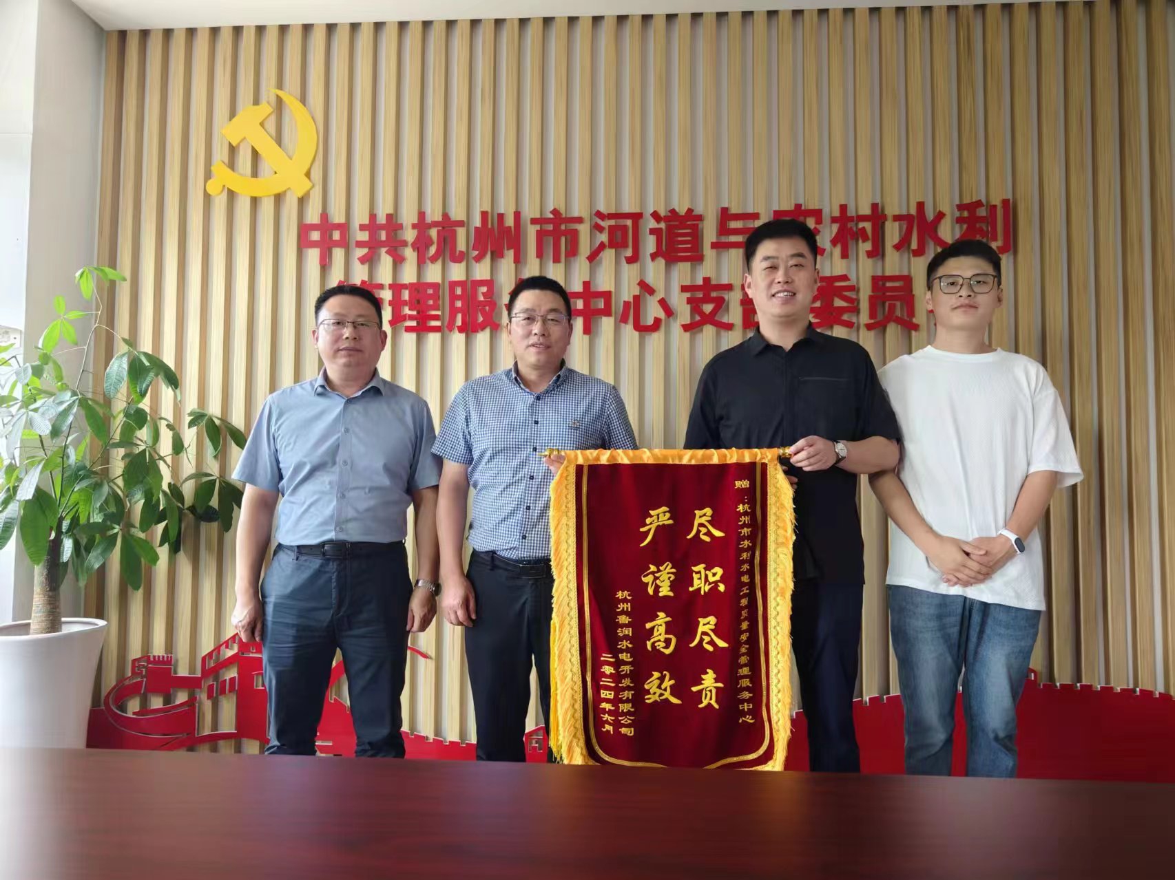 专业负责铸品质 馈赠锦旗表谢意——杭州鲁润开云(中国)Kaiyun·官方网站向杭州市水利水电工程质量安全管理服务中心赠送锦旗