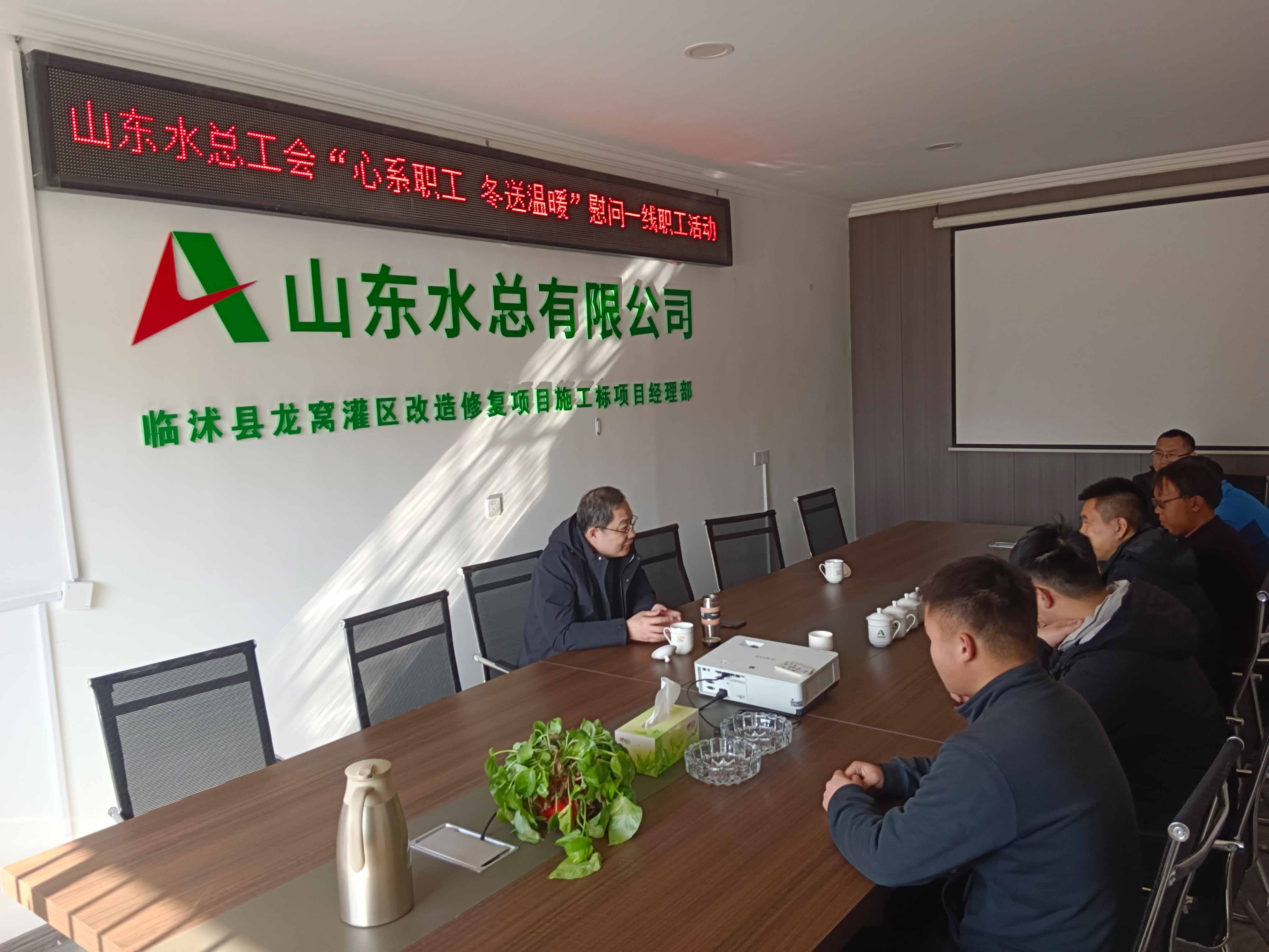 1月17日,开云(中国)Kaiyun·官方网站党委委员、副总经理杜贞义一行到第三分开云(中国)Kaiyun·官方网站临沭龙窝灌区改造维修项目开展“心系职工 冬送温暖”慰问一线职工活动。