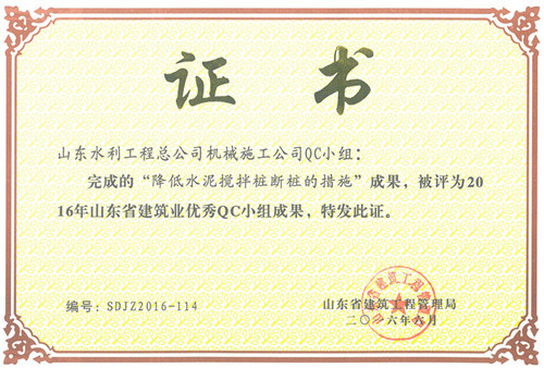 开云(中国)Kaiyun·官方网站“降低水泥搅拌桩断桩的措施”等三项成果荣获2016年山东省建筑业优秀QC小组