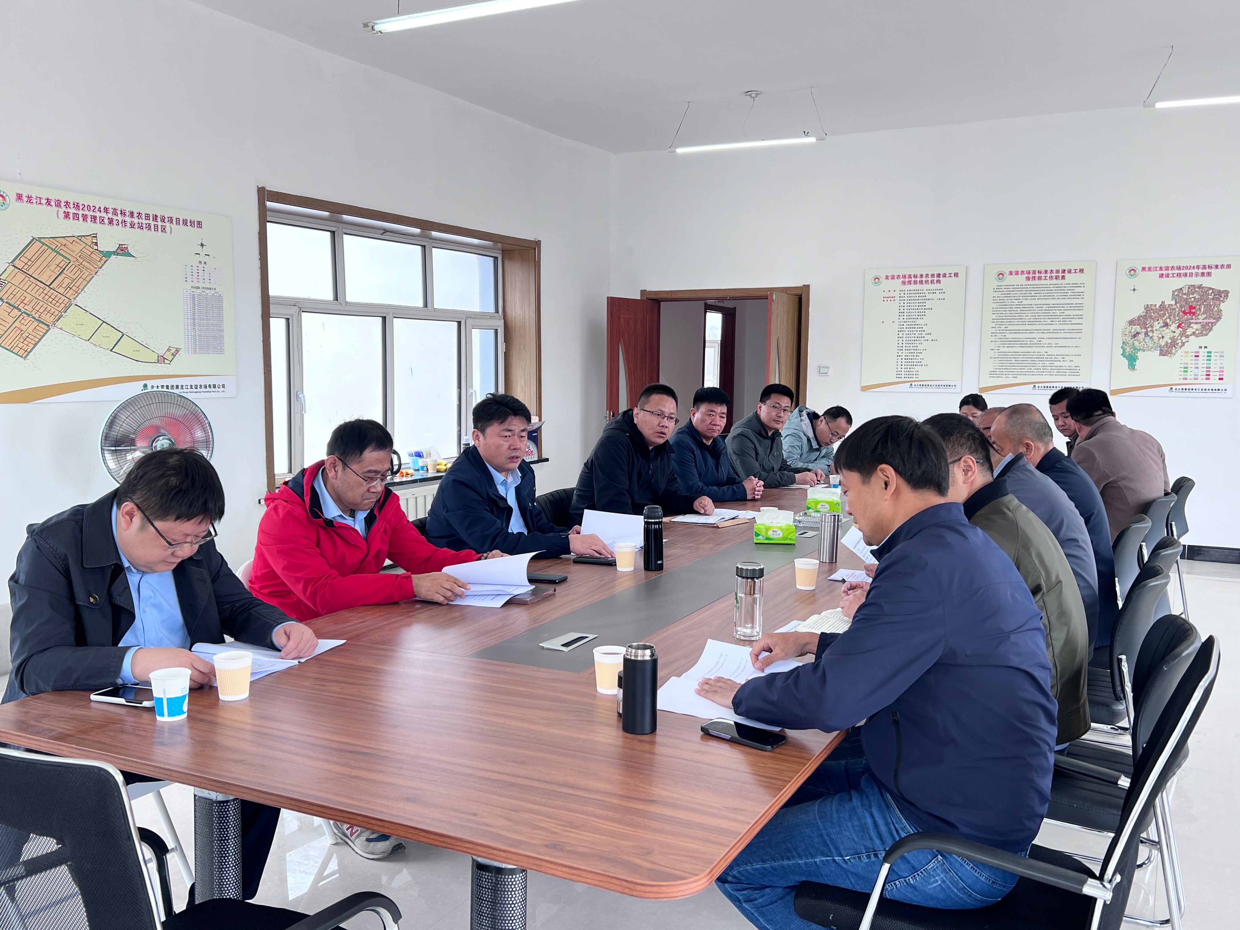 裴文晶一行首先来到黑龙江省粮食产能提升项目了解项目进展,并同项目部一线人员进行交流。随后,调研组来到黑龙江友谊农场2024年高标准农田建设项目,同北大荒集团黑龙江友谊农场有限开云(中国)Kaiyun·官方网站副总经理樊庆华进行会谈。双方对当前项目的总体进度、面临的机遇和挑战进行了分析和研讨,并对下一步如何加强合作进行深入交流,展望两家省级国有企业合作的未来,努力发挥山东水总基础建设和北大荒集团农业生产运营的优势,打造出“1+1>2”的效果。