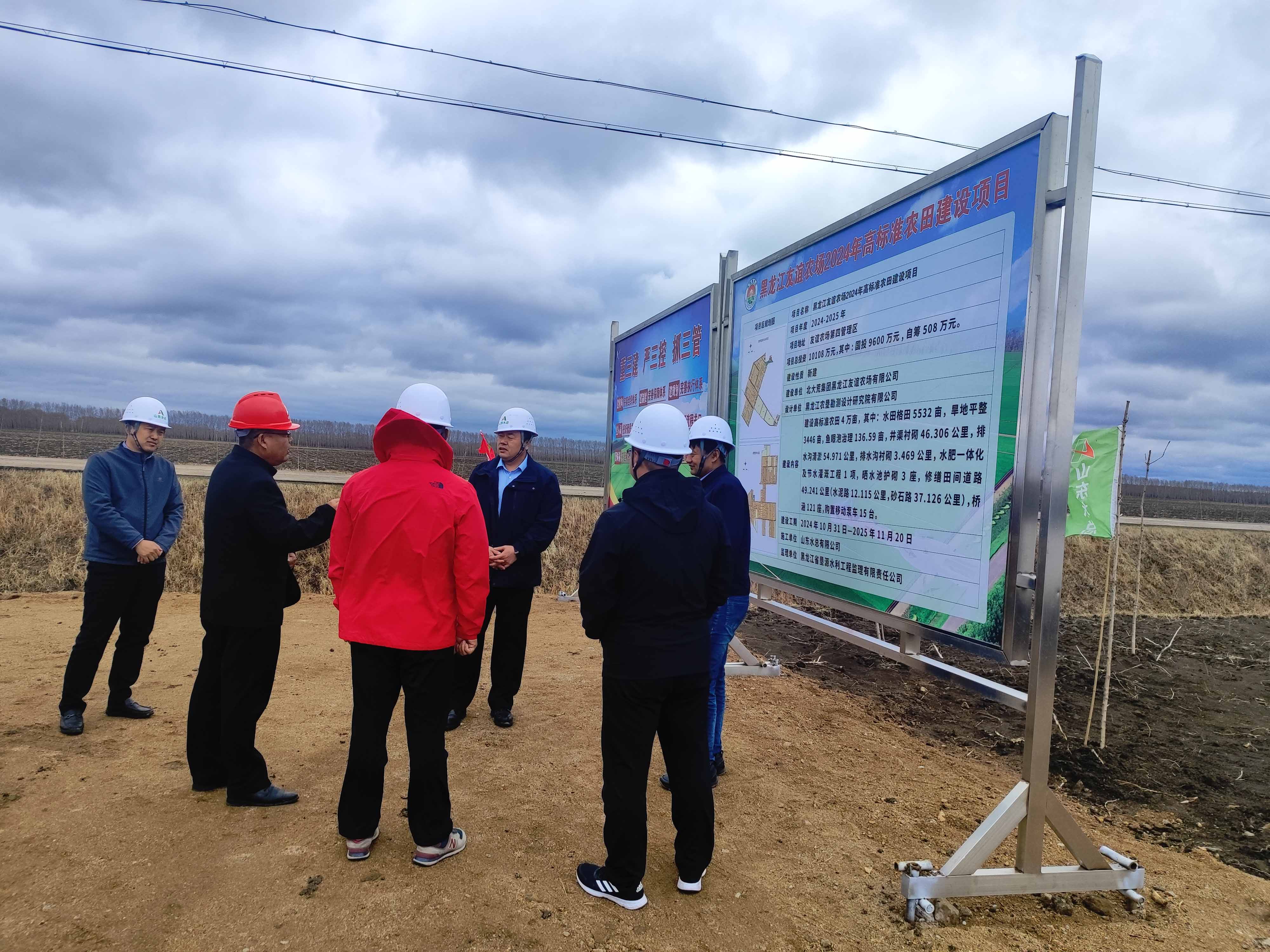 调研组还实地查看了项目施工现场和安全内业资料,听取项目汇报,并就下一步工作提出指导意见和要求。裴文晶指出,友谊农场2024年高标准农田建设项目是近年来山东水总在黑龙江省中标的唯一大中型的高标准农田建设项目,项目部应全力保证在建项目安全和质量,进一步优化施工方案和技术,推进度、提质效,打造水总品牌。