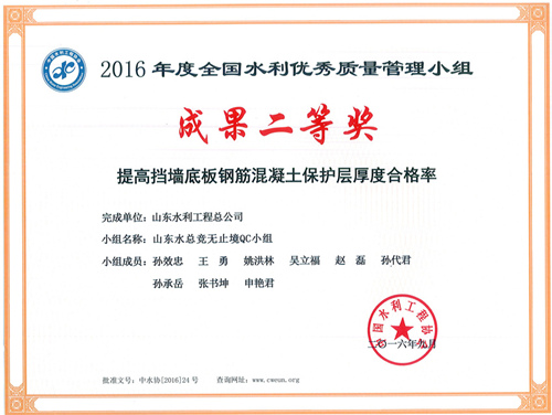 开云(中国)Kaiyun·官方网站“竟无止境QC小组”荣获2016年全国水利优秀质量管理小组