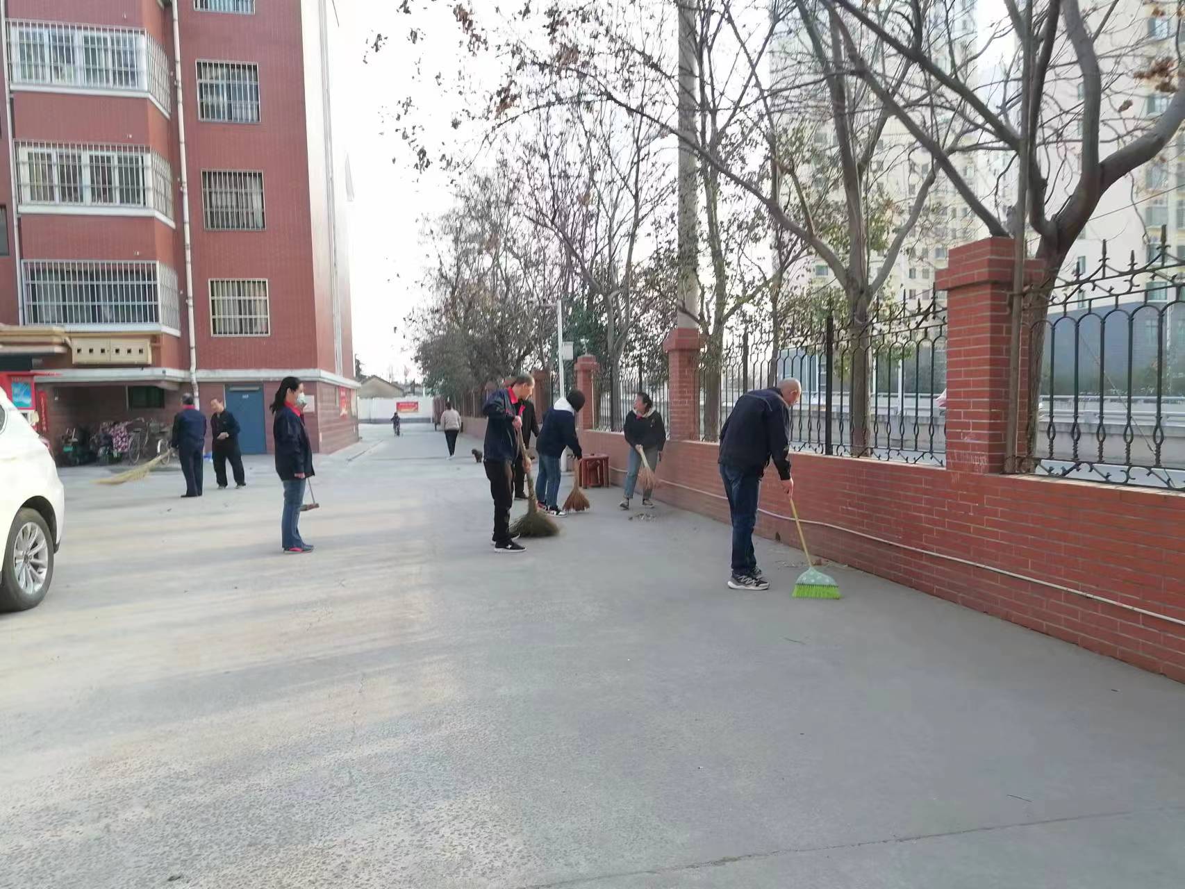 志愿者们走进社区,有的用扫帚清扫小区院内地面灰尘,有的拣拾草丛中的塑料袋、香烟盒,有的用铲子清理地上的口香糖、墙上的小广告……用心投入到“学雷锋”活动中,对社区内的卫生死角、生活垃圾进行了认真清扫。党员志愿者们对来往的居民宣传“雷锋精神”,鼓励居民们自觉履行文明行为,爱护环境卫生。