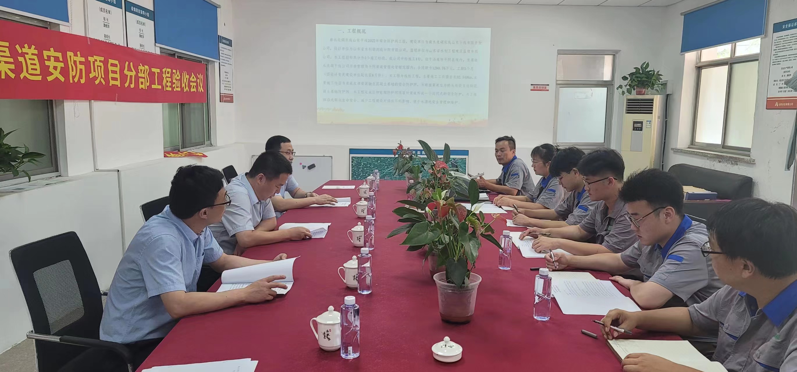 靳文硕一行人首先来到施工现场了解工程建设情况,在随后的座谈会上,靳文硕听取了工程汇报,同项目职工就基础开挖新工艺能否满足施工要求、如何把控开挖质量、节省工程成本等问题展开讨论。靳文硕对项目总体进展情况给予了肯定,并对工程收尾工作给出了指导和建议。靳文硕指出,随着施工进度的推进,项目达到收尾阶段时,水利工程复杂化的特性体现尤为明显,项目部要全面掌握项目的总体情况,准确判断工程剩余工程量,精准把控生产资源,做好收尾工作,做到善始善终。
