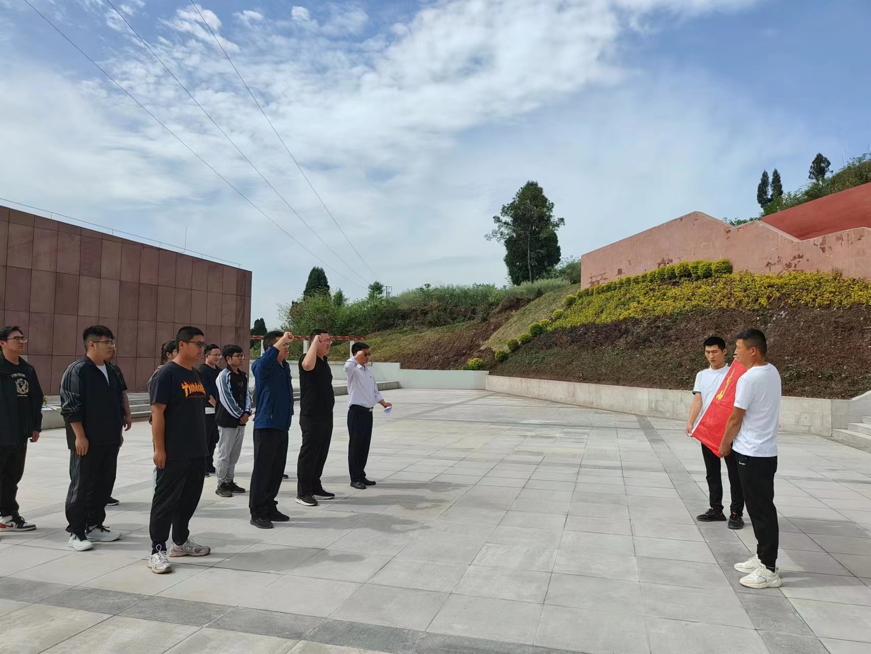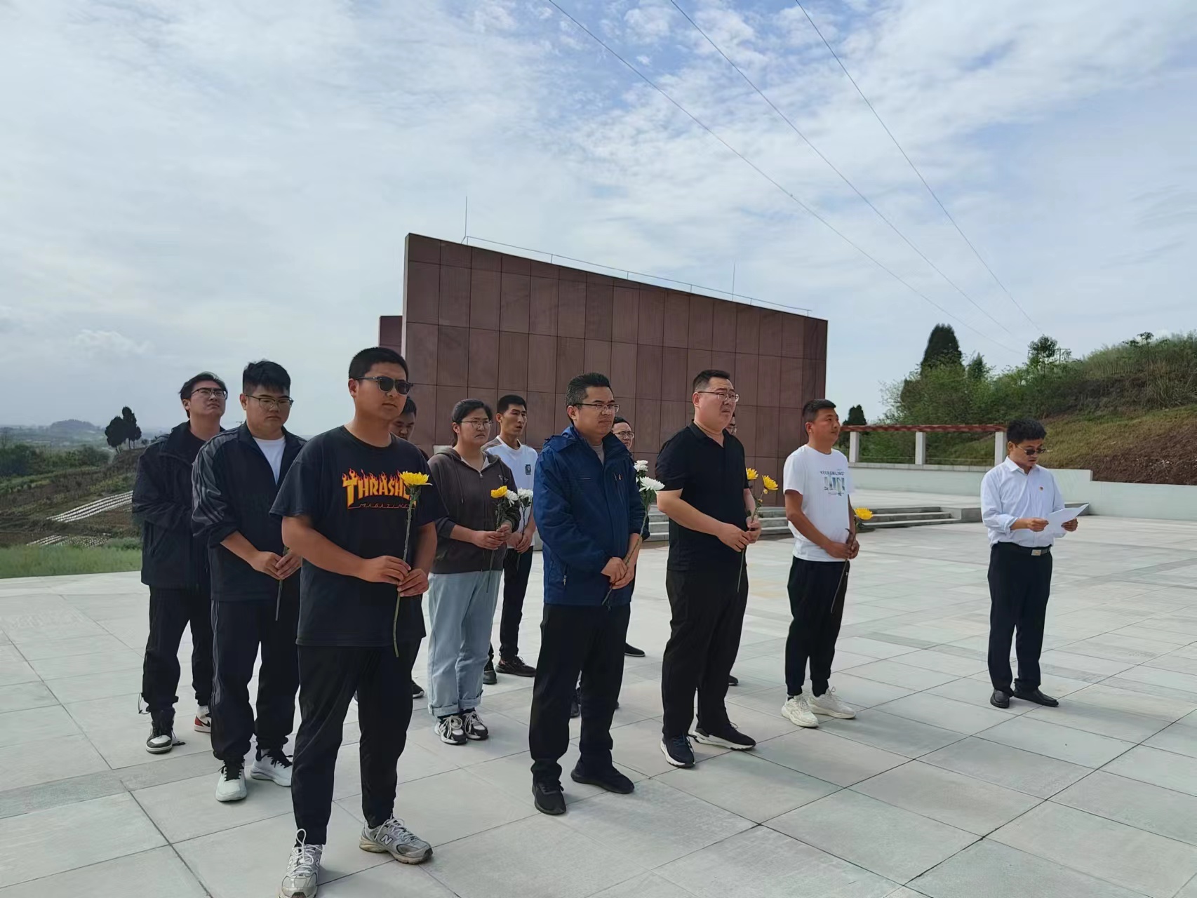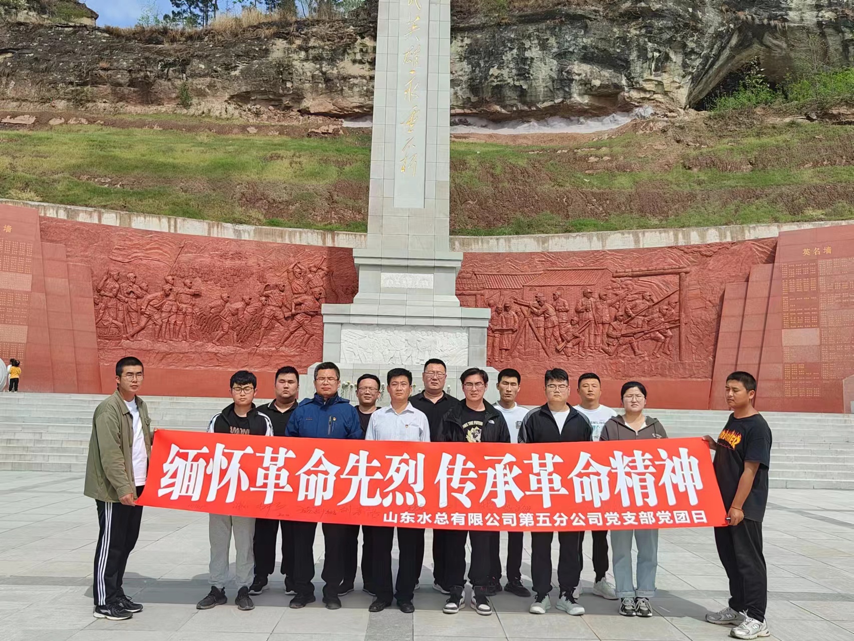 全体人员在烈士纪念碑前默哀致敬、敬献鲜花,深切缅怀革命先烈。随后,党员代表钱玉同志带领全体党员和团员重温入党、入团誓词,并依次在横幅上郑重签下自己的名字,以签名为约定,将革命精神根植于心。