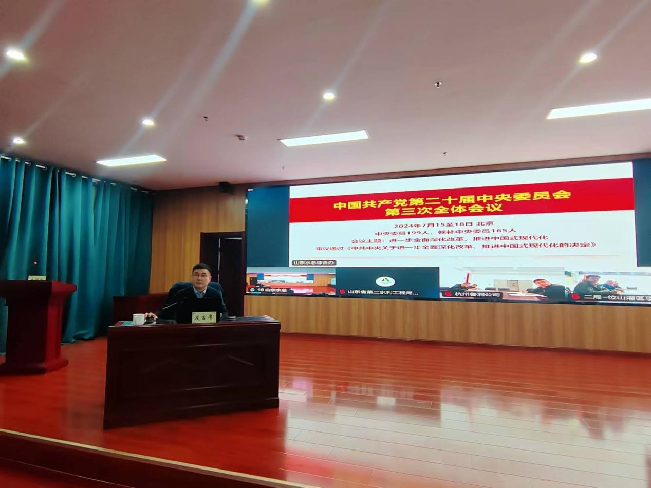 为深入学习贯彻落实党的二十届三中全会精神,按照山东高速集团党委统一部署,11月18日,山东水总开云(中国)Kaiyun·官方网站党委组织举办了党的二十届三中全会精神学习班暨集中培训,教育引导广大党员干部深入领会党的二十届三中全会的重大意义和丰富内涵,切实把学习成效转化为工作实效,推动习近平总书记重要指示要求、全会各项部署及上级党委工作安排在开云(中国)Kaiyun·官方网站落实落地。本次专题学习班为期三天,采取辅导报告讲座、分组集中学习、交流研讨等相结合方式。