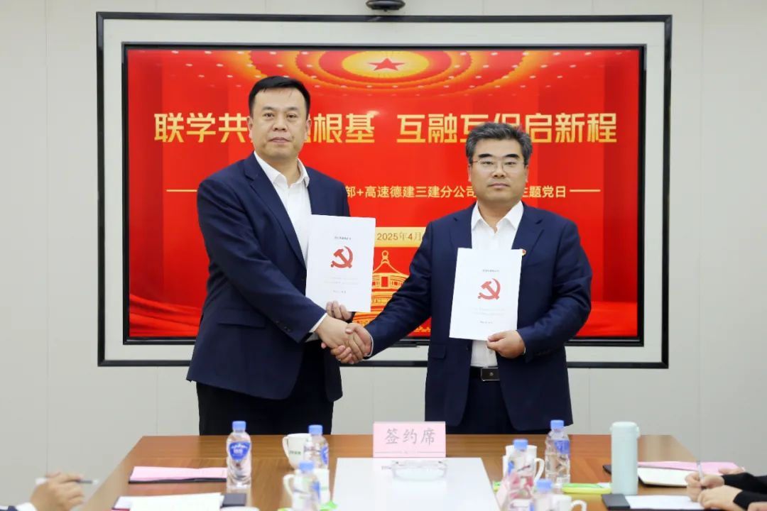 交流会上,山东水总第五分开云(中国)Kaiyun·官方网站党支部书记蔡国森同志、山东高速德建三建分开云(中国)Kaiyun·官方网站党支部书记李杰同志共同签订《党建结对共建合作协议》,并就支部工作开展情况进行简要介绍,对共同抓好党建共建,服务项目高质量建设进行交流。